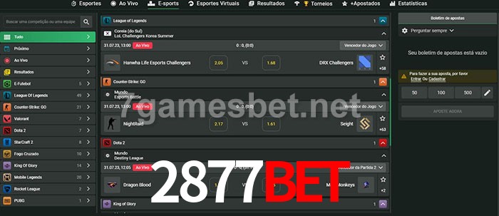 O 2877Bet oferece uma grande seleção de opções de apostas em e-sports com probabilidades competitivas